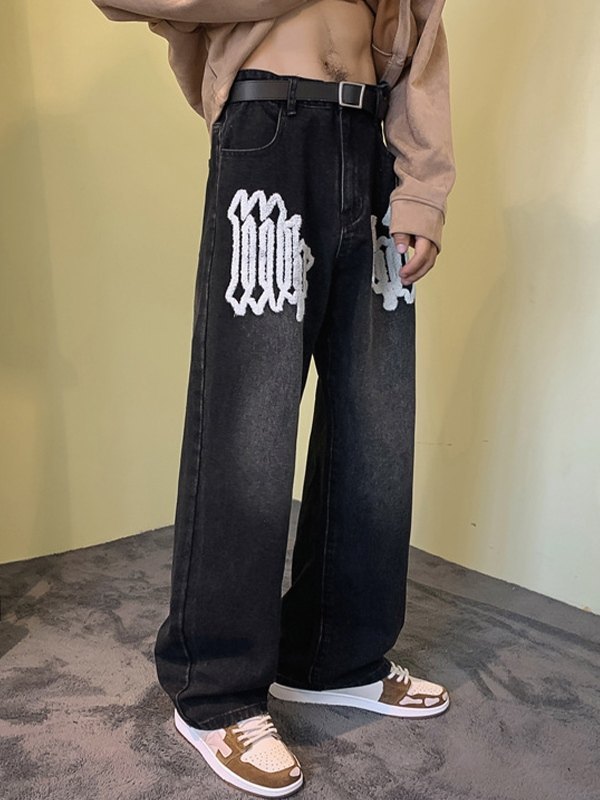 Men’s Hip Pop Tie Dye Splice Loose Jeans