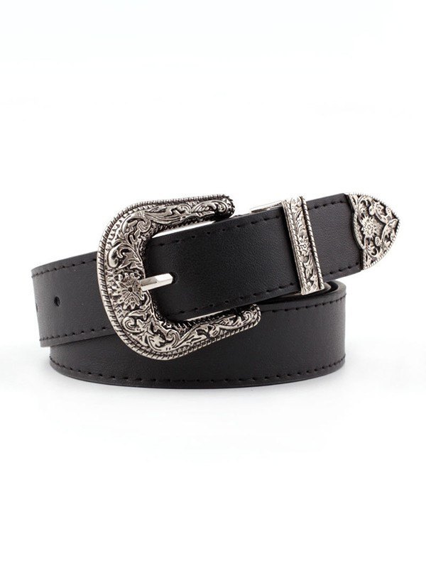 Engraved Metal Embellished Buckle Belt