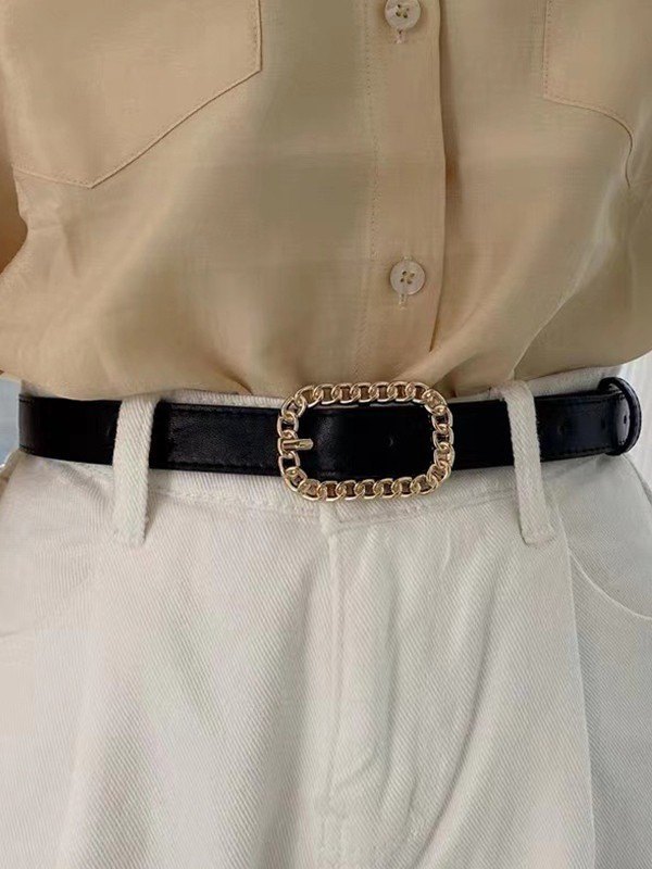 Vintage Chain Buckle Pu Leather Belt