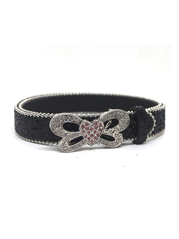 Sequined Rhinestone Heart Butterfly Belt