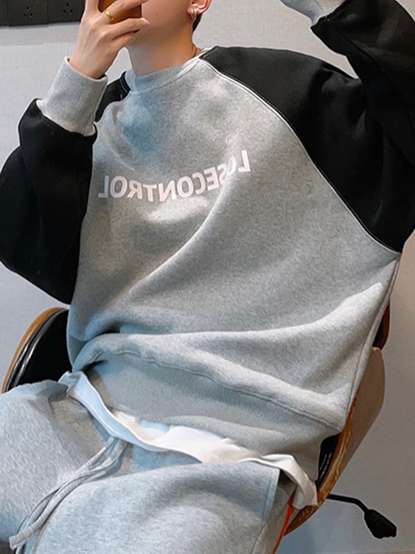 Men’s Raglan Letter Print Pull Over Swetshirt