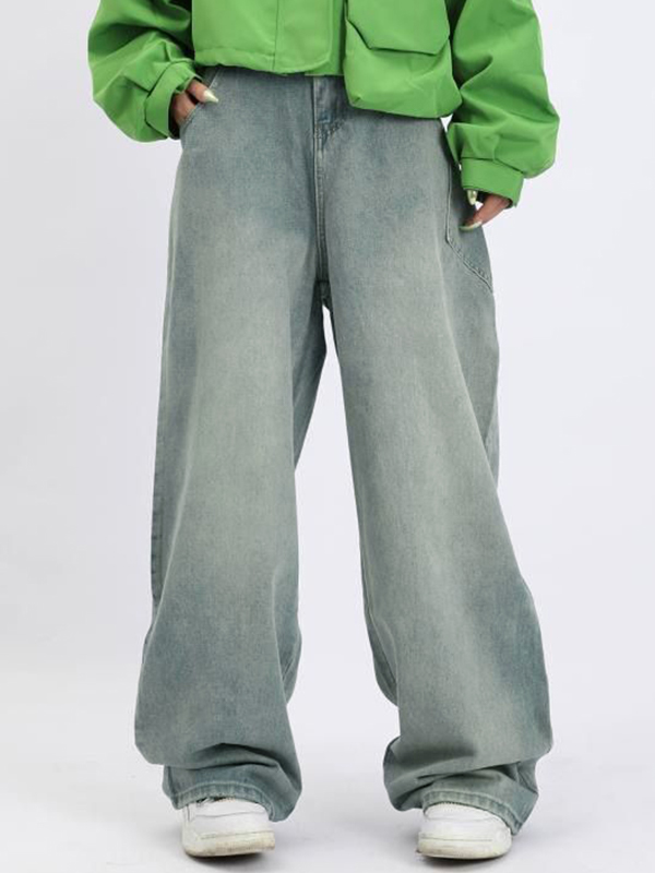 Washed Versatile Cat Whiskers Loose Jeans