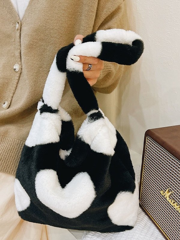 Heart Pattern Fuzzy Shoulder Bag
