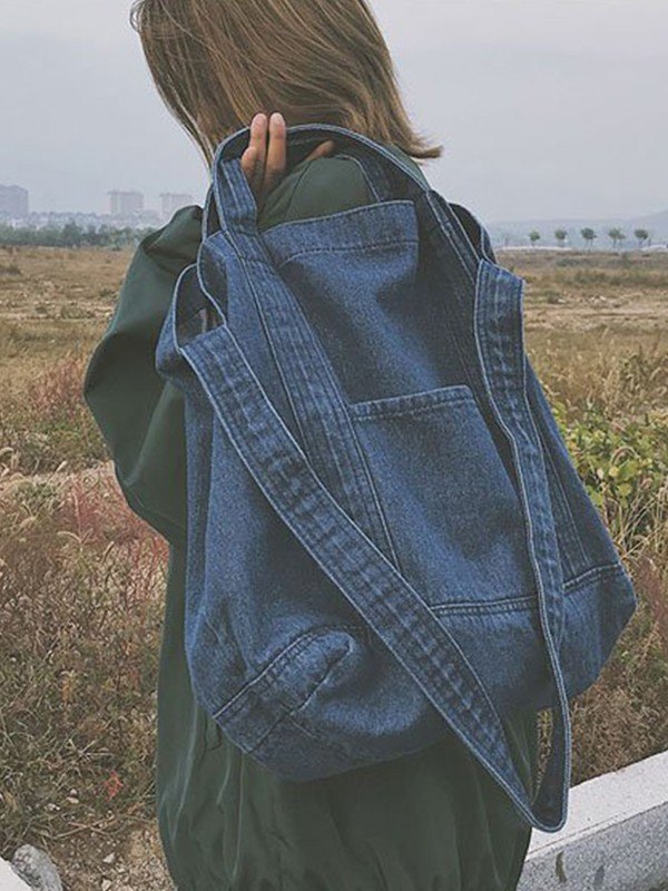 Large Washed Denim Tote Bag