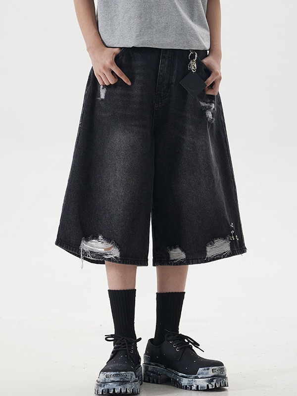 Men’S Retro Loose Distressed Denim Shorts