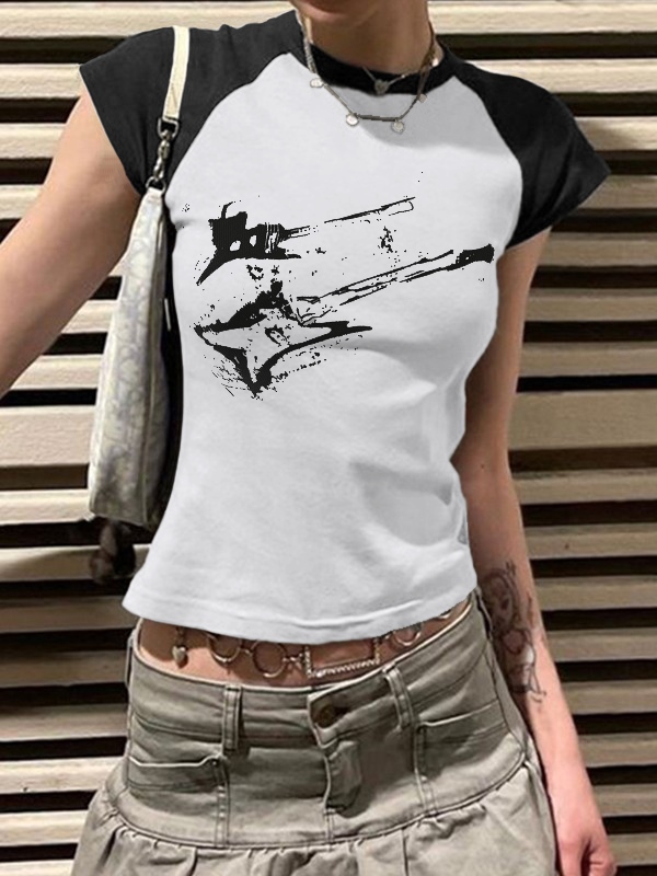 Vintage Print V Neck Breasted Long Sleeve Tee