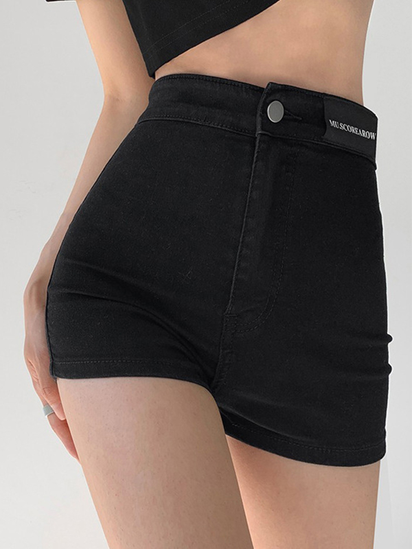 Labeling High Rise Slim Thin Denim Shorts