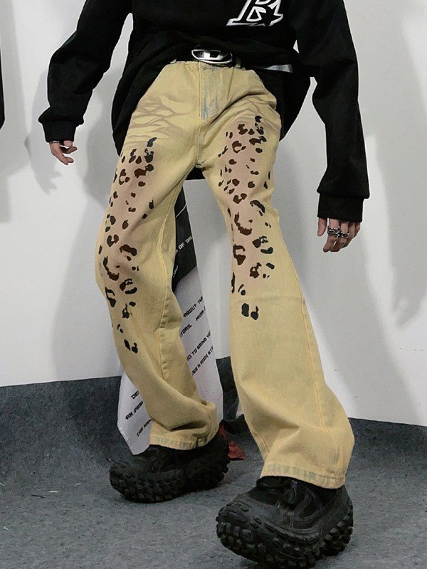 Men’s Vintage Wash Leopard Straight Leg Jeans