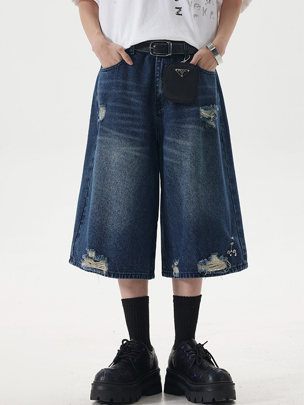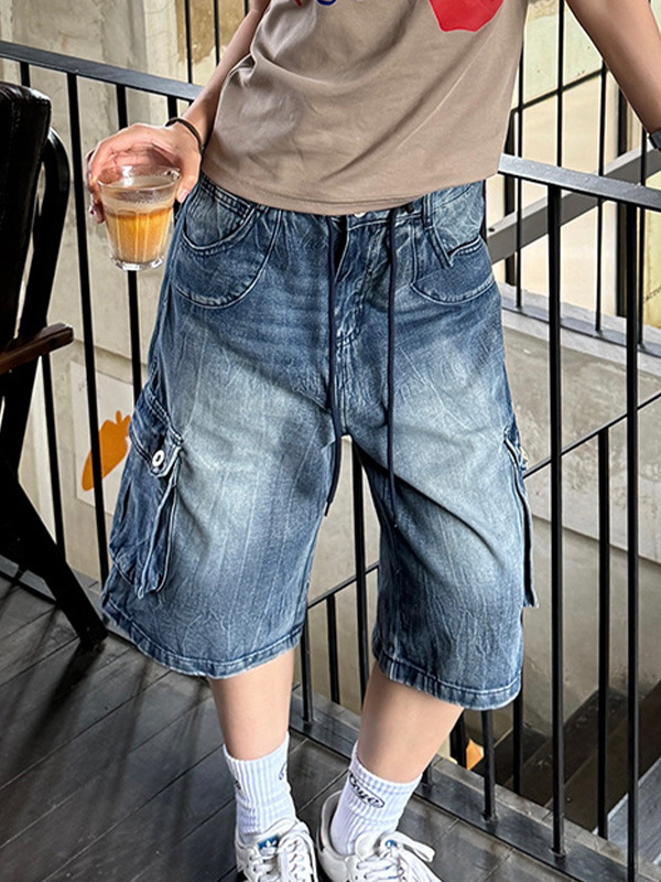 Men’s Denim Cargo Pocket Drawstring Shorts