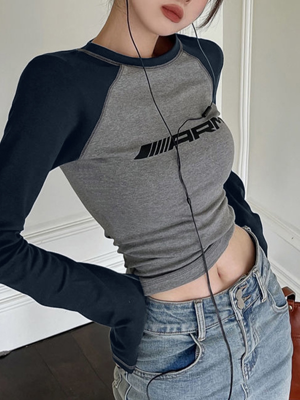 Raglan Contrast Color Slim Long Sleeve Tee