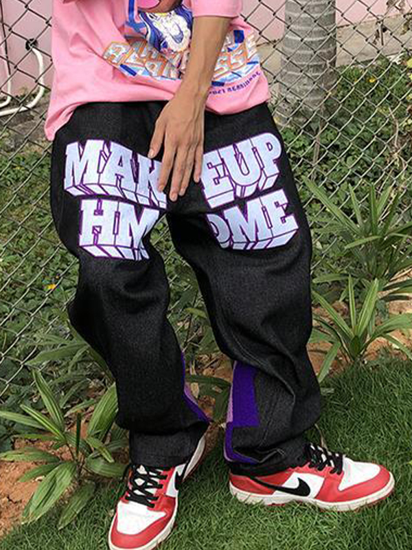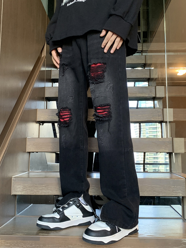 Men’s Patch Leather Lightning Loose Jeans