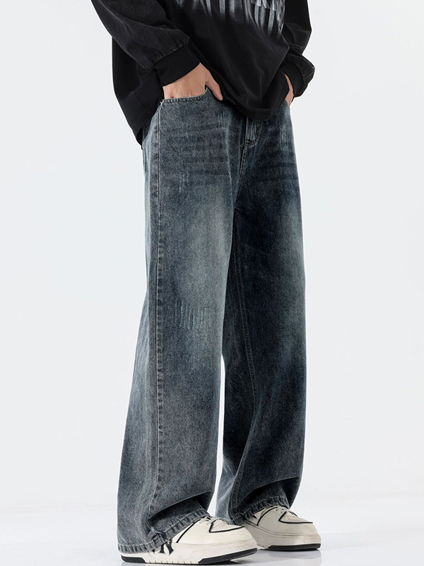 Retro Straight Style Distressed Washed Loose Jeans