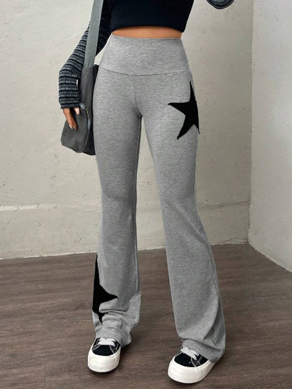 Star Print Highly Elastic High Rise Flare Leg Pants