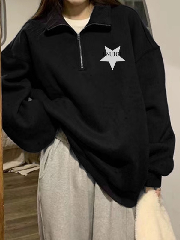 Bat Print Breasted Irregular Hem Long Sleeve Tee