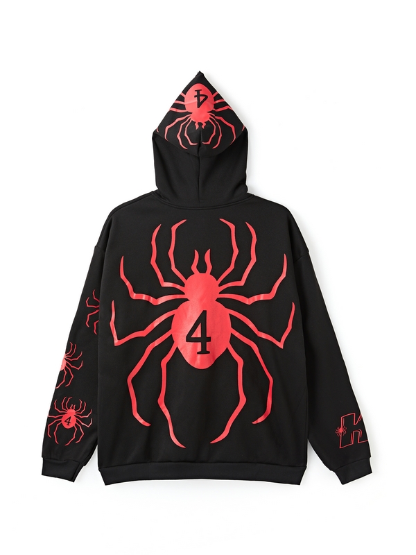 Men’s Contrast Color Spider Web Print Hoodie