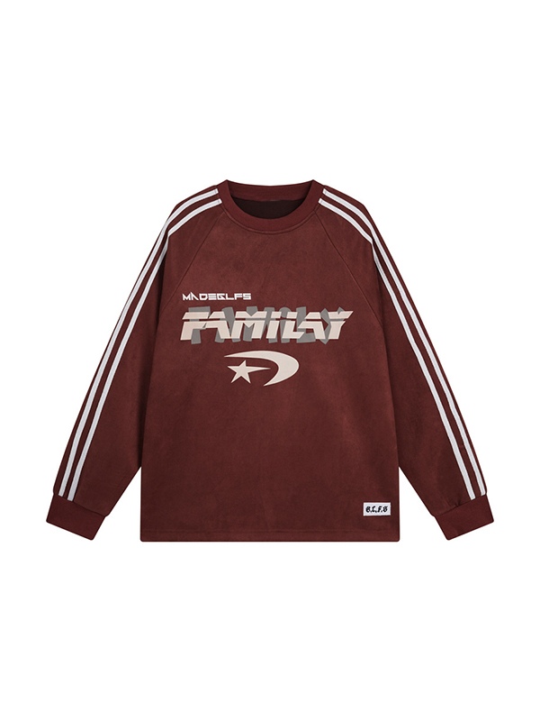 Men’s Suede Letter Print Piping Sweatshirt