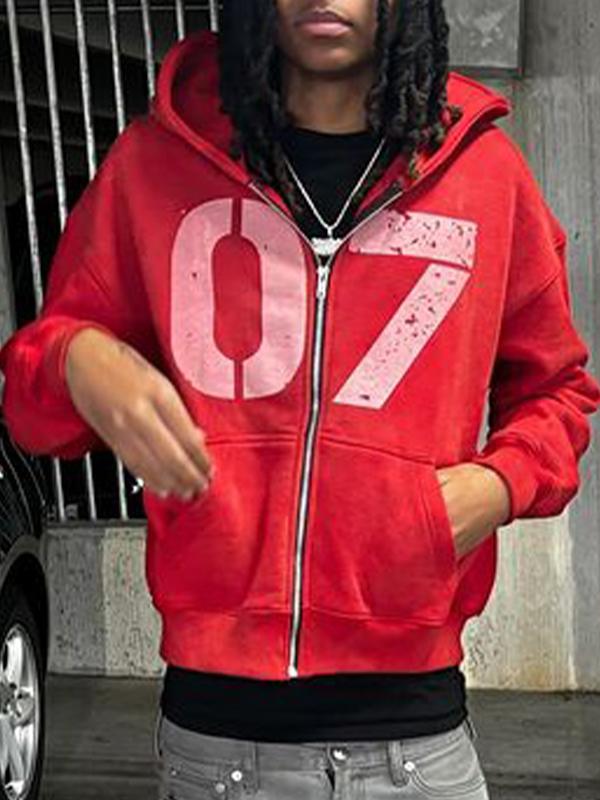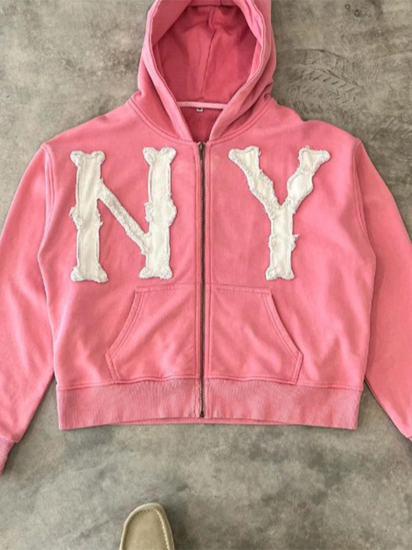 Embroidered Zip Up Cardigan Loose Hoodie