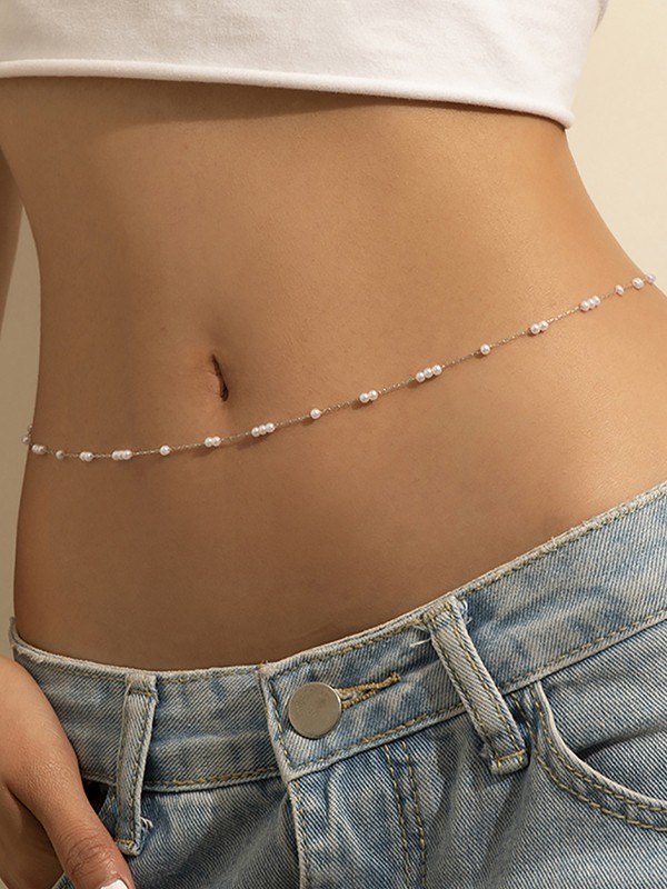 Faux Pearl Embellished Belly Chain
