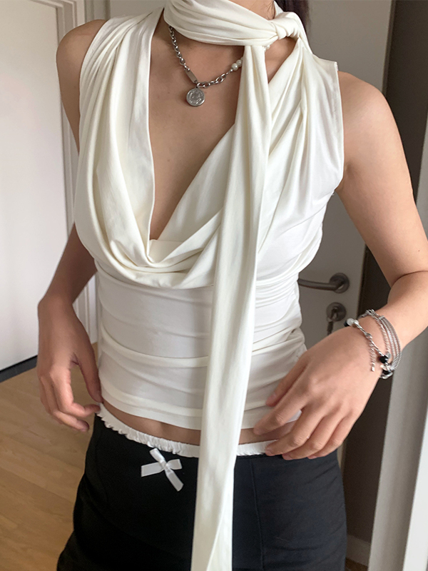 V Neck Ribbon Halter Neck Tank Top