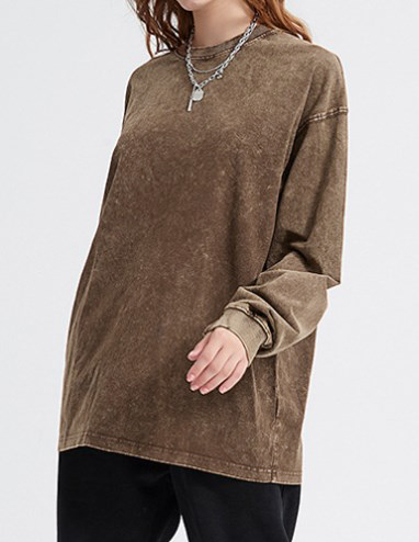 Men’ Solid Color Washed Distressed Long Sleeve Tee