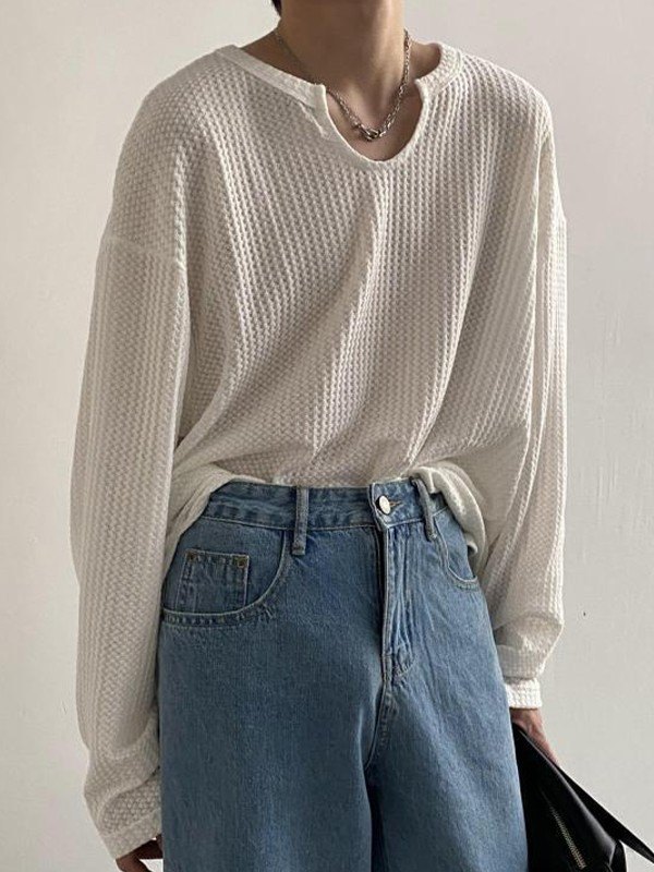 Men’s Simple Waffle Long Sleeve Tee
