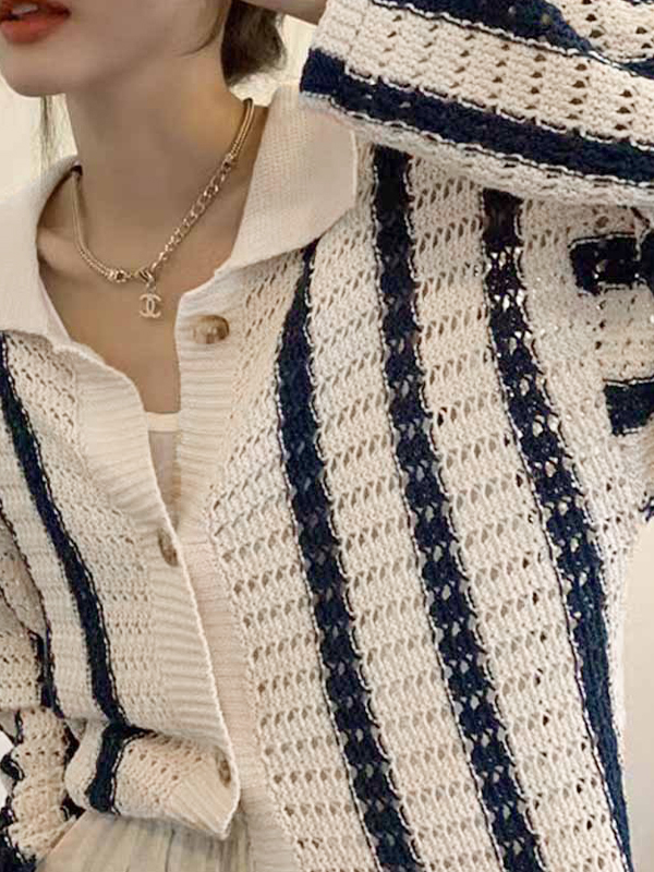 Unique Design: The cardigan features a cut out design, adding a unique and stylish touch to the overall look. Its stripe design makes it easy to pair with any outfit.