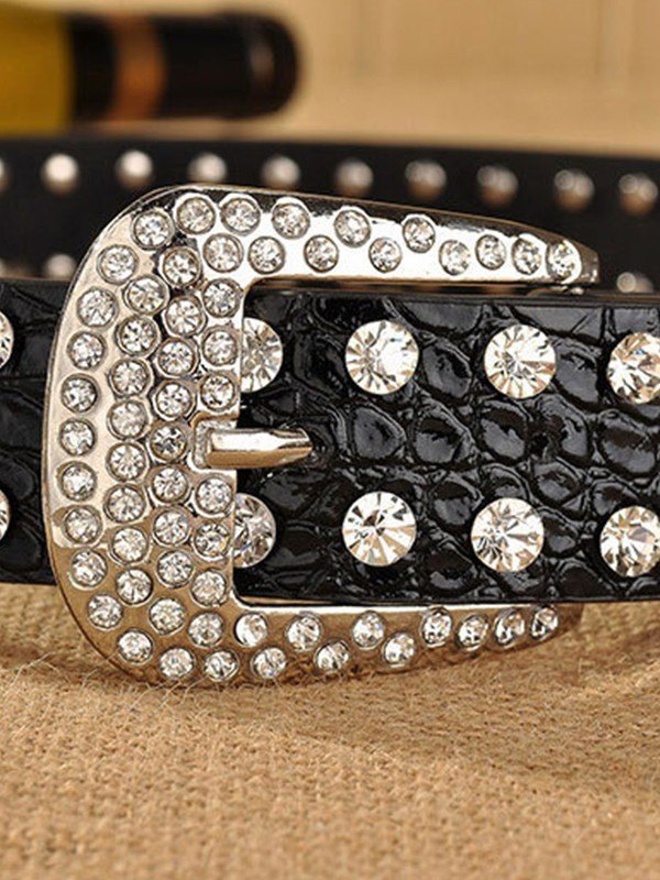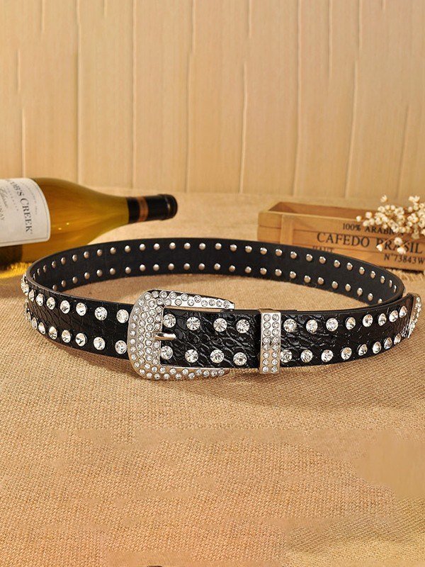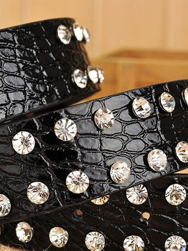 Be the first to review “Double Rhinestone Pu Leather Belt”