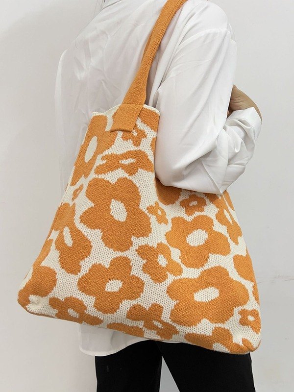 Floral Jacquard Knitted Tote Bag