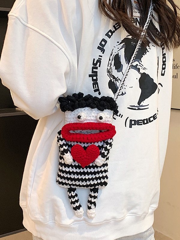 Hand Made Crochet Knit Cartoon Phone Crossbody Bag