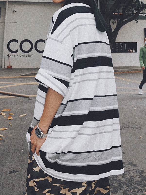 Unique Design: The lapel neck and short sleeve design, combined with the classic striped print and delicate embroidery, give this tee a unique and stylish look.