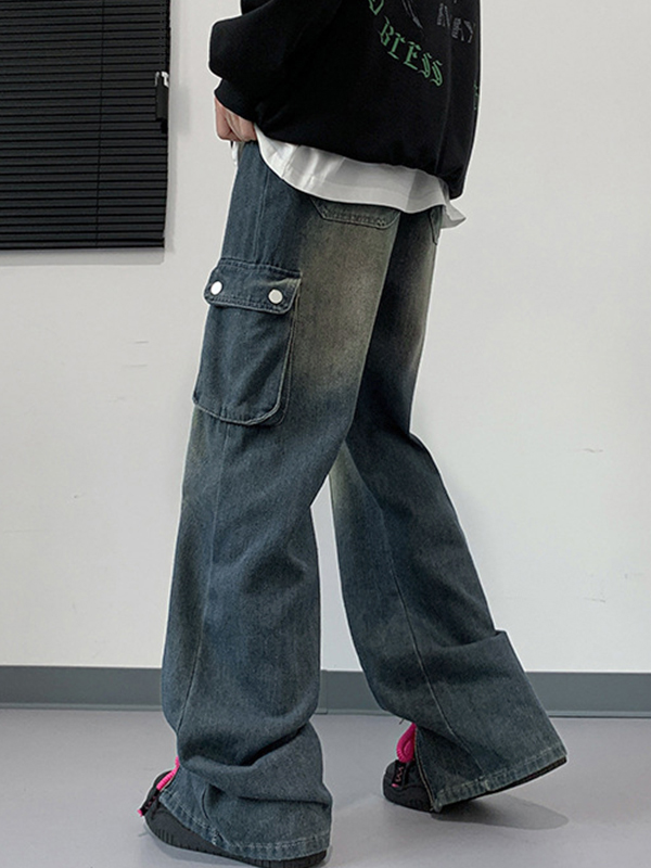 Men’s Flap Pocket Zip Up Slit Cargo Jeans
