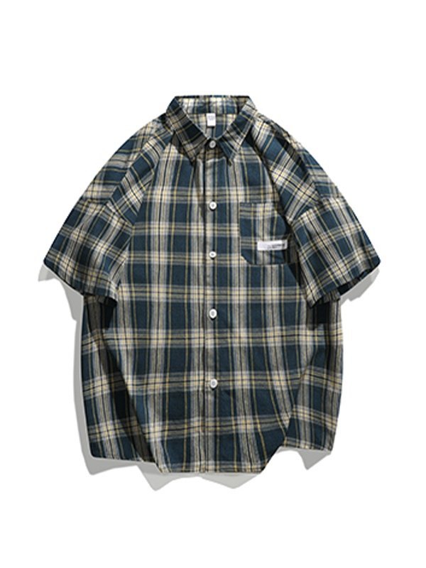 Men’s Pocket Buttoned Short Sleeve Checkered Shirt