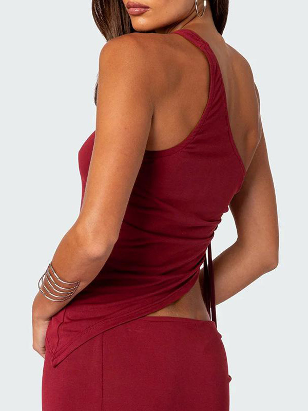 One Shoulder Lace-up Asymmetry Tank Top