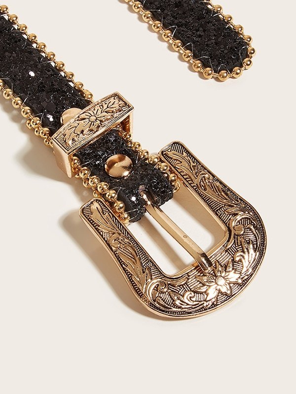Be the first to review “Sequin Carved Buckle Skinny Belt”