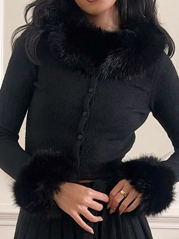 Simple Fur Collar Cardigan
