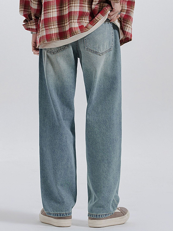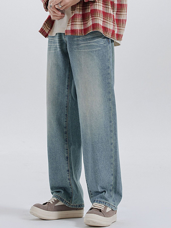 Washed Versatile Cat Whiskers Loose Jeans