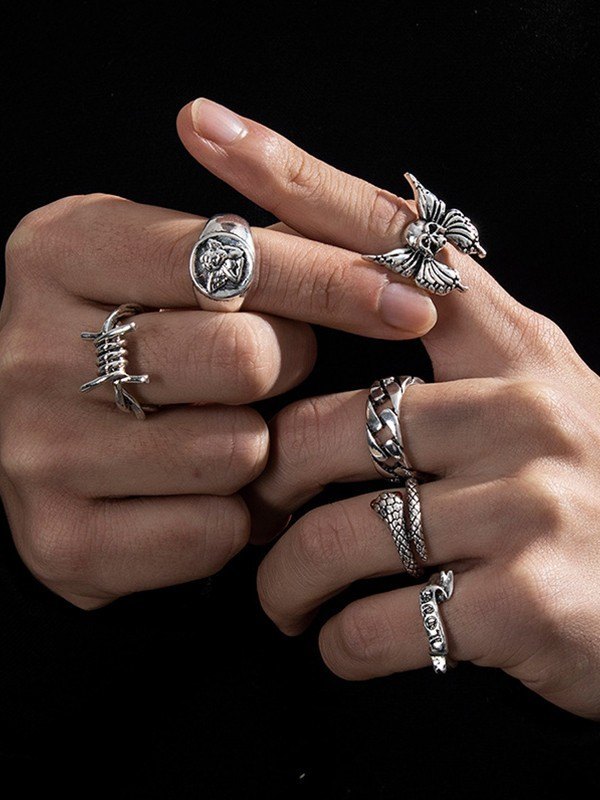 Men’s 6pcs Vintage Punk Ring Set