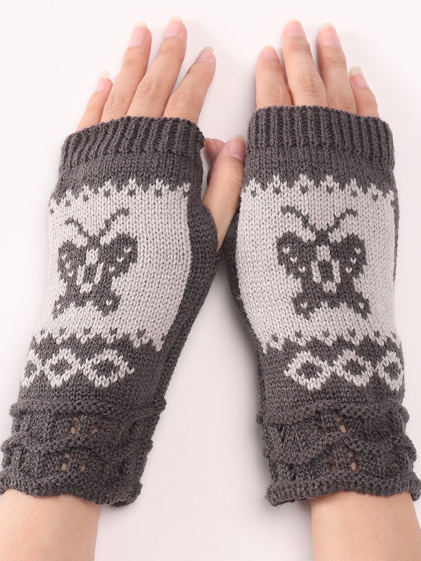Butterfly Jacquard Knit Fingerless Gloves