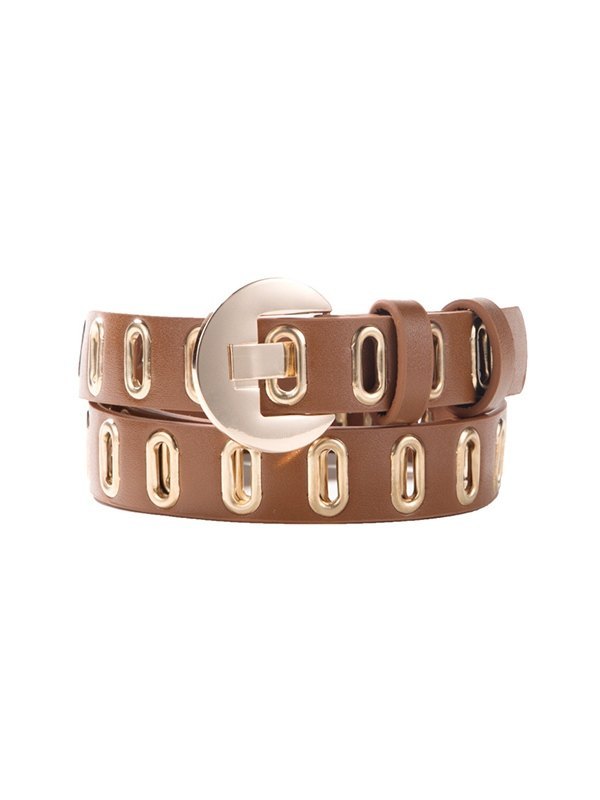 Vintage Fur Stitching Eyelet Metal Buckle Belt
