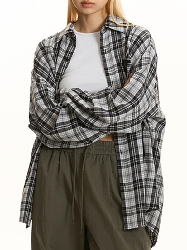 Versatile Checkered Long Sleeve Blouse