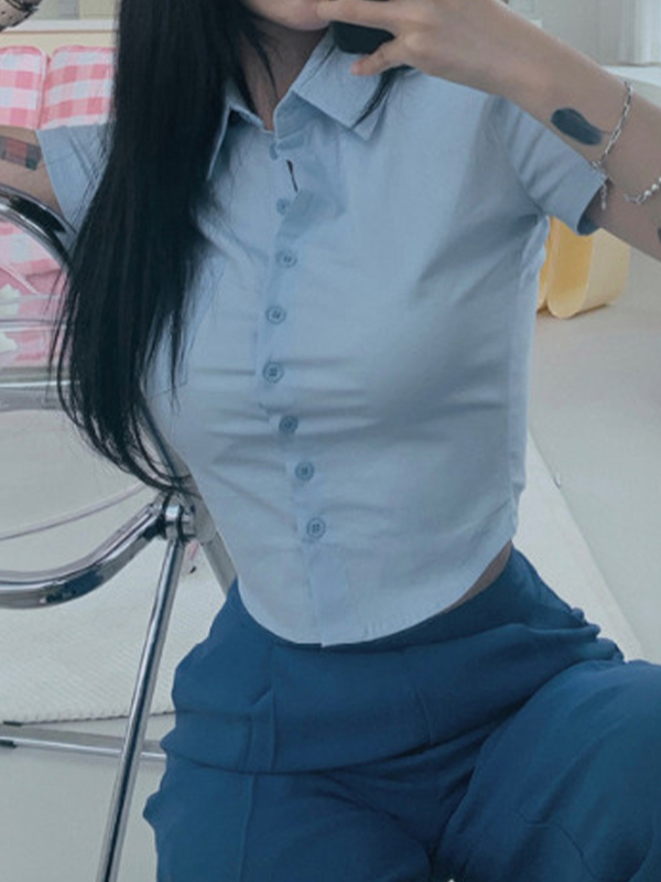 Plain Slim Short Sleeves Shirts