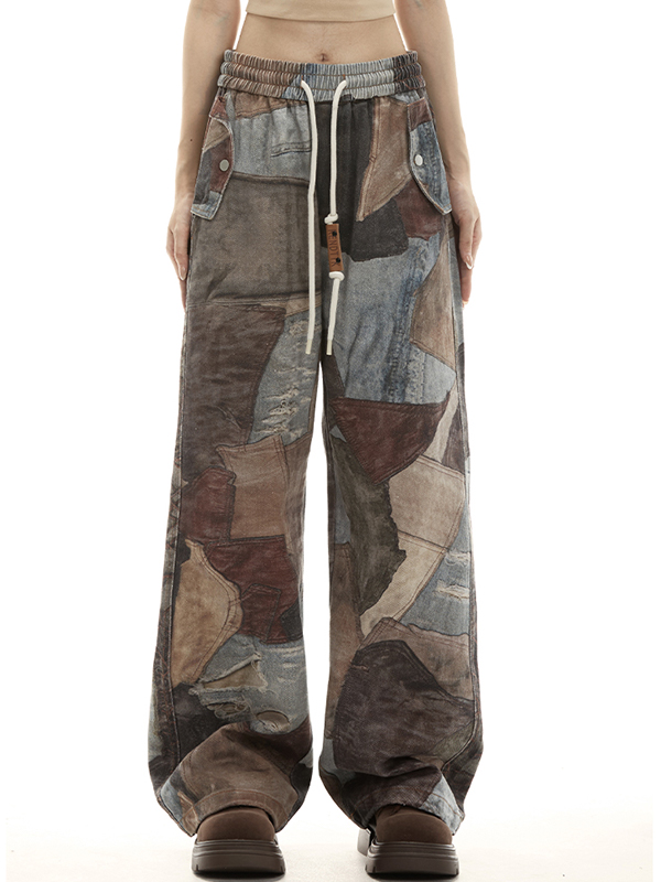 Men’s Vintage Print Drawstring Straight Leg Jeans