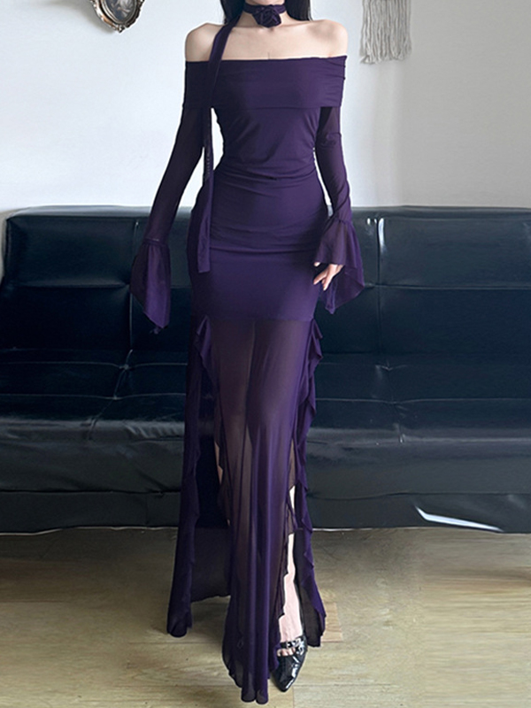 One-Shoulder Waist And Slimming Ruffles Maxi Dresses