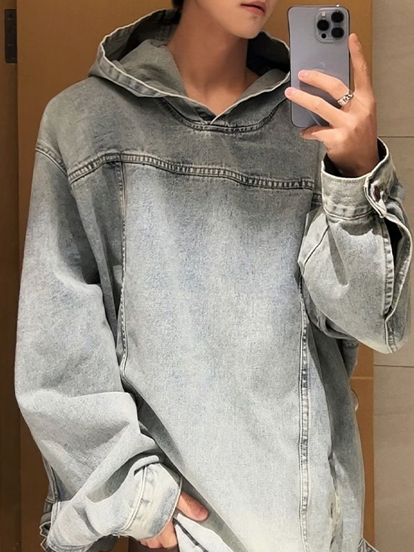 Men’s Denim Fake Two Piece Oversized Hoodie
