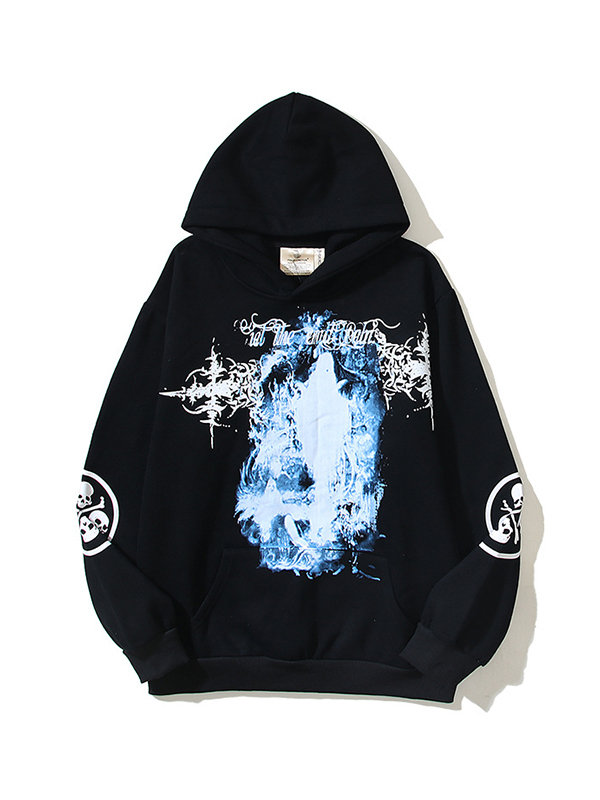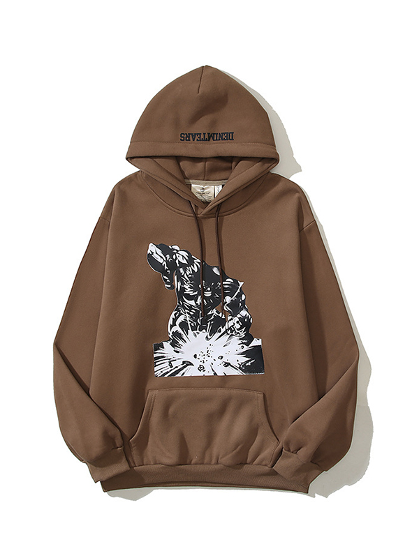 Men’s Street Print Kangaroo Pocket Lacing Oversized Hoodie
