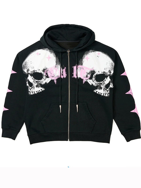 Men’s Hip Pop Print Full Zipper Oversized Hoodie