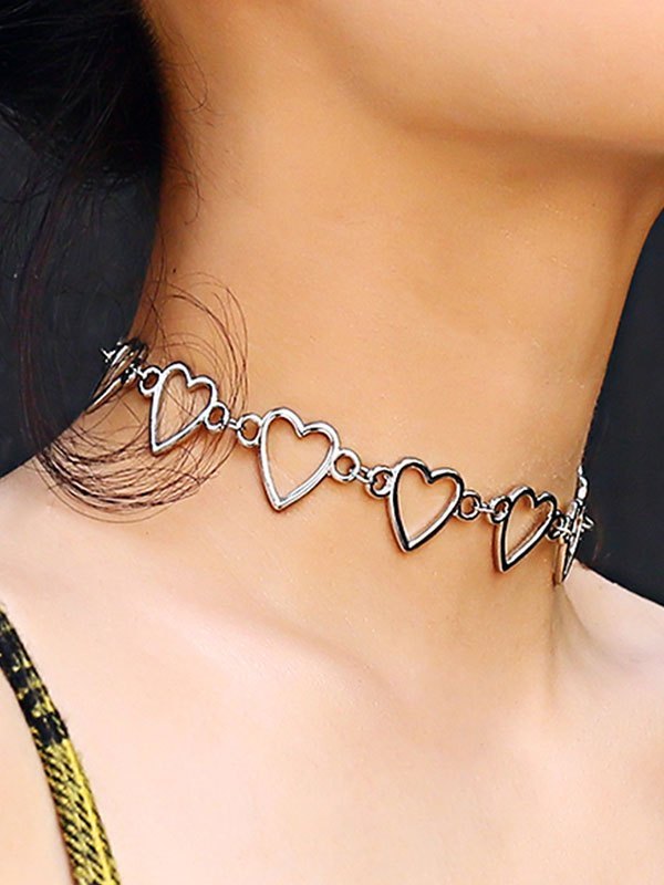 Hollow Out Heart Pendant Choker Necklace