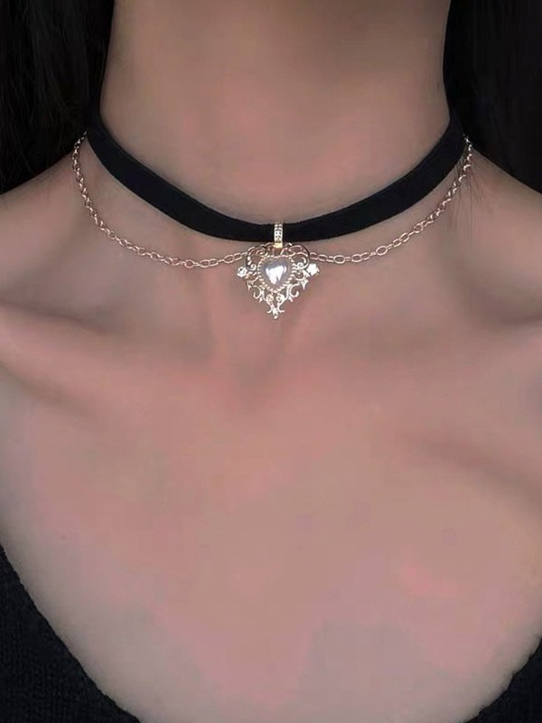 Gothic Heart Chain Velvet Choker Necklace