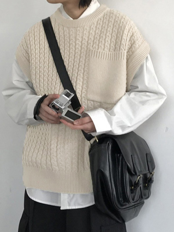Men’s Street Spider Web Jacquard Sleeveless Knit Sweater