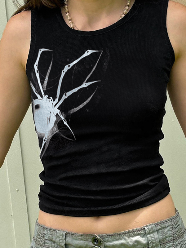 Street Spider Print Ribbed Tank Top
